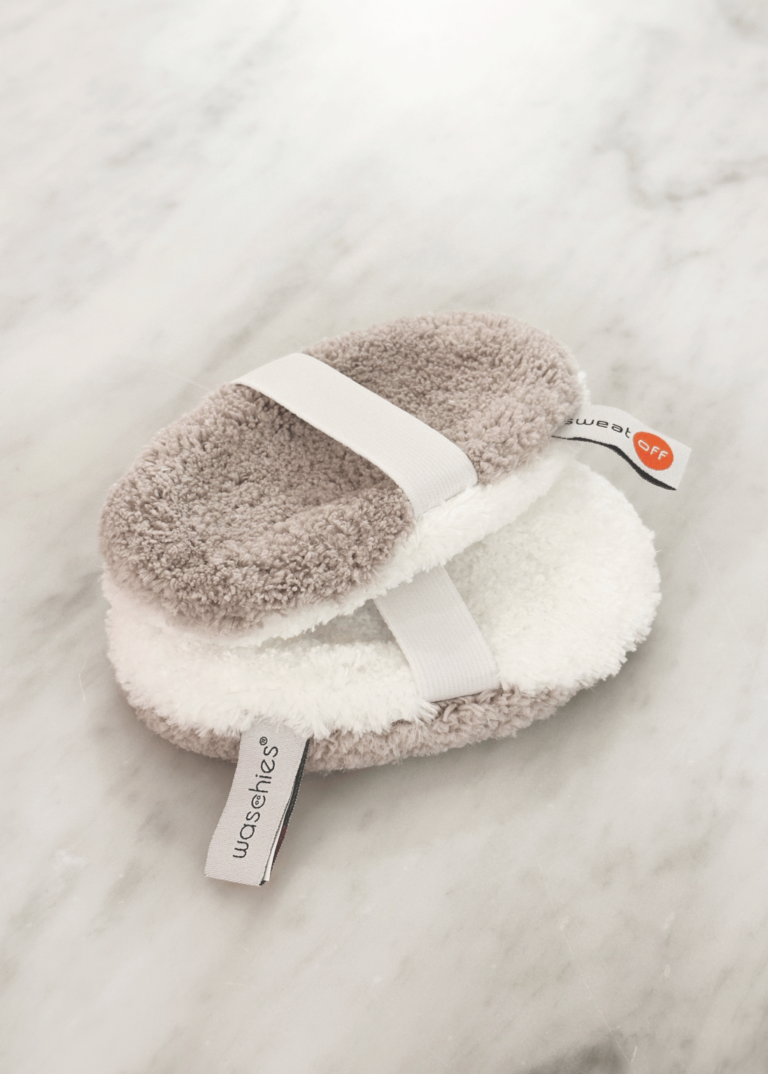 - Sweat-Off Waschies vor dem ersten Gebrauch waschen. Nach jeder Anwendung empfehlen wir die Sweat-Off Waschies mit Seife auszuwaschen und in der Waschmaschine zu reinigen. Waschbar bis zu 95°C ohne Weichspüler. Trocknergeeignet.
