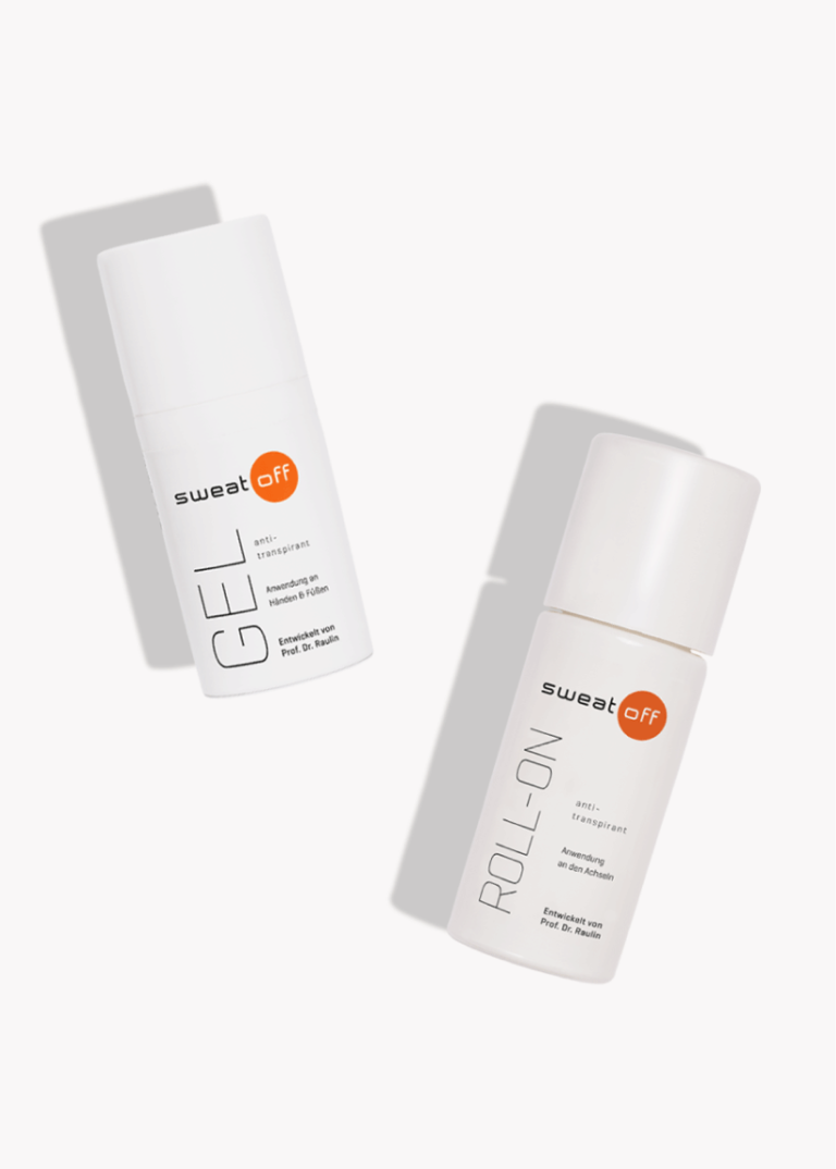 - Das herkömmliche Deo wird nicht mehr benötigt, kann aber auf Wunsch weiterverwendet werden – nach der Anwendung von Sweat-Off bitte sechs bis acht Stunden abwarten.